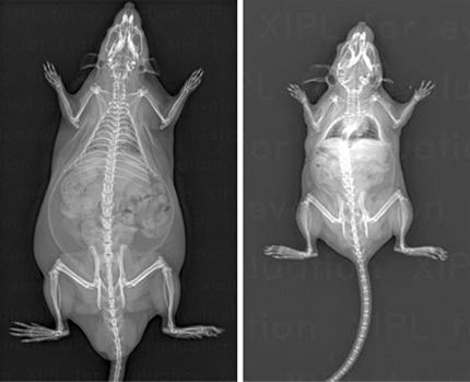 マウスやラットといった実験小動物を用いた前臨床研究において、非侵襲的に計測された体組成指標(骨密度、筋肉量、体脂肪量など)は、様々な病態モデルの病態進行や治療効果を評価するバイオマーカーとして近年注目されています。従来の体組成評価技術(MRI, CT, インピーダンス法など)と比較して、より迅速且つ高い精度で実験小動物の体組成を定量的に可視化することができるDXA(Dual energy X-ray absorptiometry)計測技術は、実験小動物専用に設計されたシステムの開発によりトランスレーショナルリサーチを推進するイメージングモダリティとして活用が始まっています。