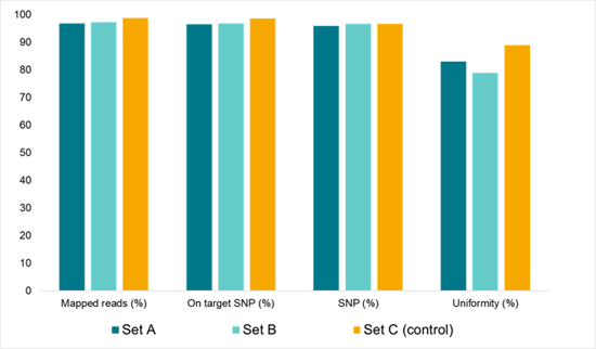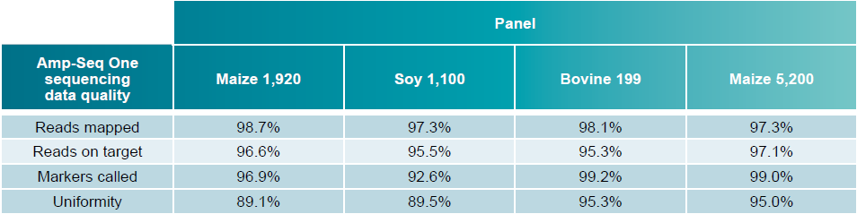 本パネル全体のジェノタイピングコールレートは99%を超え、リードの97%がリファレンスゲノムにマッピングされ、Amp-Seq Oneと高密度パネルを用いて得られたシーケンス結果が高品質であることが示されました。