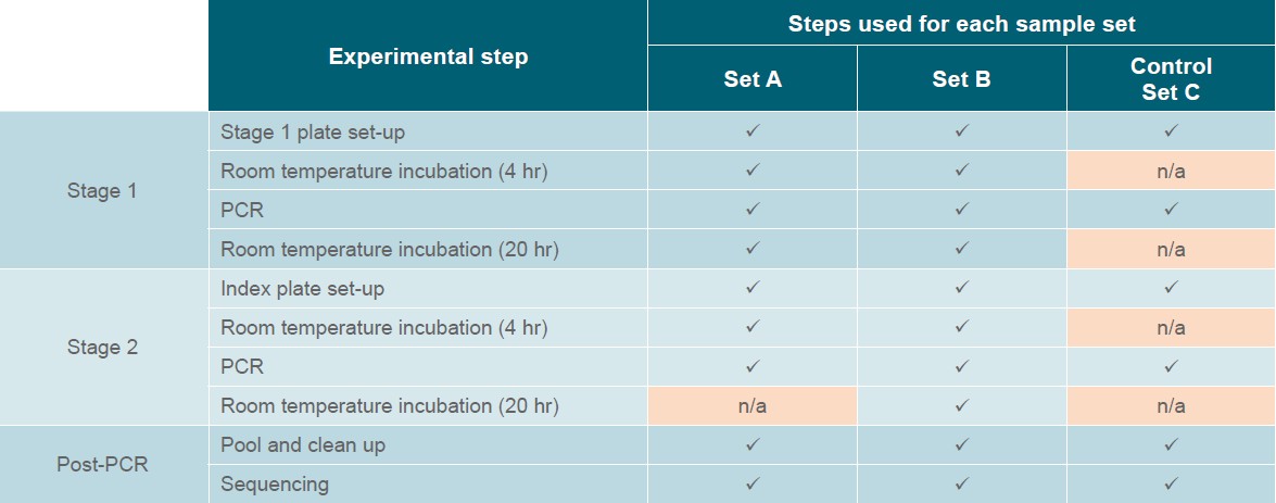 表2. Amp-Seq 試薬の室温安定性を調べるためのセットアップ